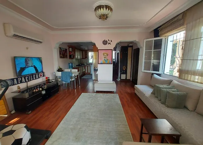 This Fethiye accommodation is composed of 2 bedrooms, a fully furnished kitchen with kitchenware and a washing machine and 2 bathrooms.
